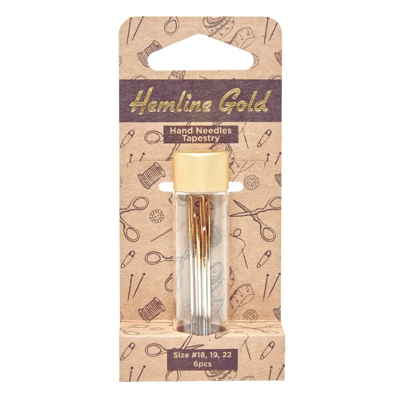 Agujas de tapicería y bordado con ojo dorado nº18-22 de la marca Hemline Gold.