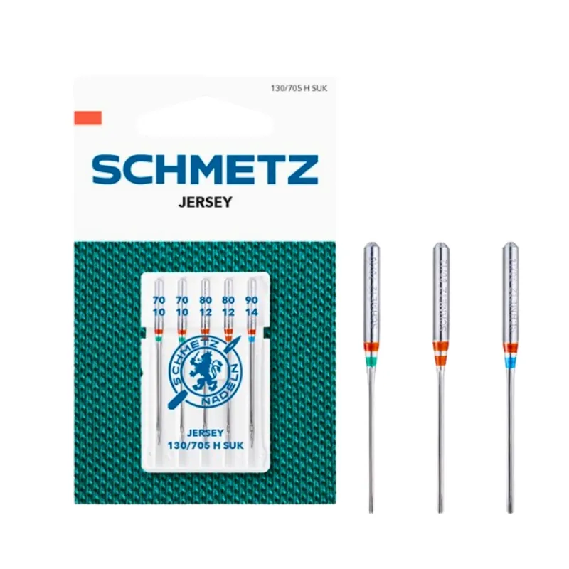 Agujas de máquina de coser para tejidos de punto jersey de la marca Schmetz sistema 130/705H SUK.