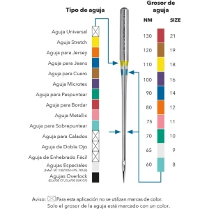 Gracias a su exclusivo sistema de identificación por colores podrás saber el tipo y el tamaño de la aguja fácilmente.