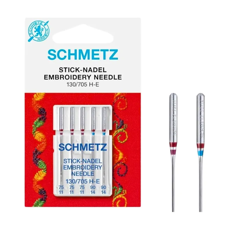 Agujas de máquina de coser para bordar y hacer puntadas decorativas de la marca Schmetz sistema 130/705 H-E