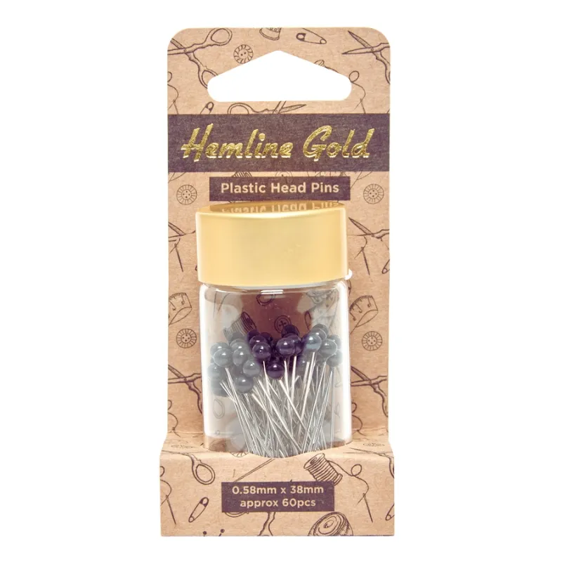 Alfileres con cabeza de plástico de color negro de la marca Hemline Gold.