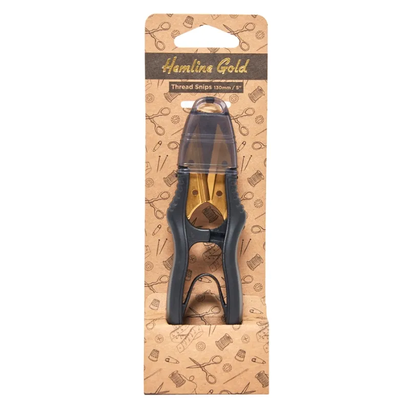 El Cortahilos negro de la marca Hemline Gold con cuchillas doradas de acero inoxidable extra afiladas.