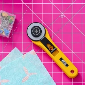 Cúter rotatorio de la marca Olfa con cuchilla circular de 45 mm.