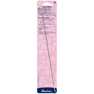 La aguja gira-bies de Hemline está diseñada para simplificar el proceso de dar la vuelta a bieses, tubos, tirantes y cintas después de coserlos.