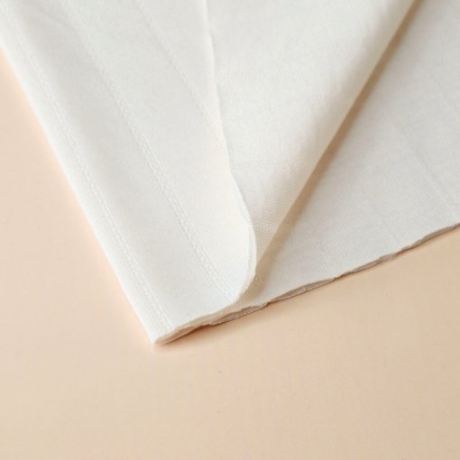 Jersey de algodón orgánico con calado en forma de rayas en color blanco crema.