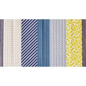 Color: Estampado franjas verticales, gris, azul, amarillo.