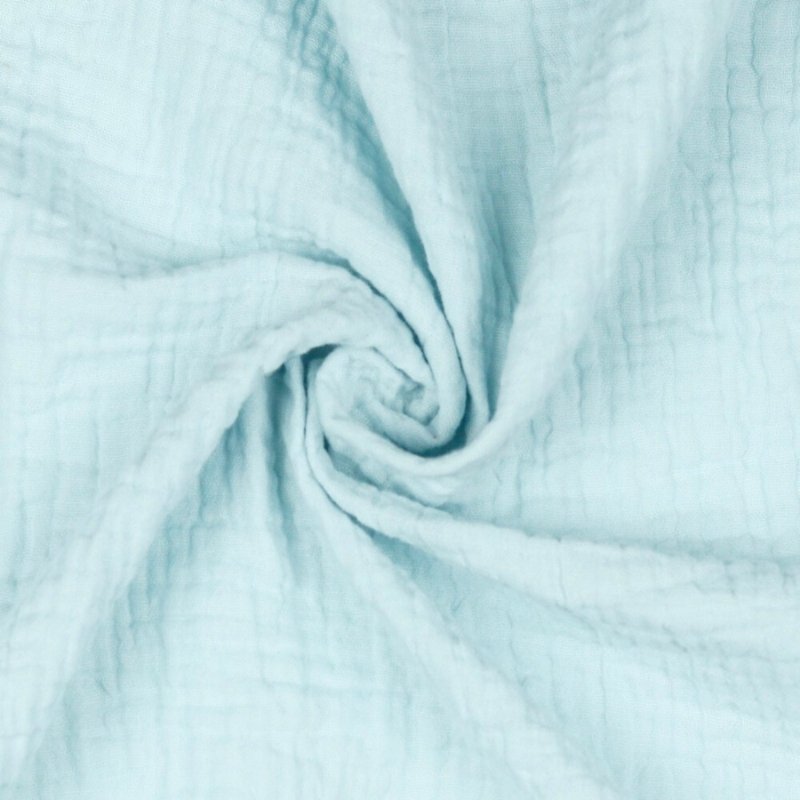 Descubre la muselina de algodón orgánico azul bebé, un tejido que combina suavidad, ligereza y versatilidad para dar vida a tus ideas. Su textura arrugada y aireada, característica de la doble gasa, la hace perfecta para una amplia gama de proyectos, desde prendas de vestir para toda la familia hasta accesorios para el hogar y manualidades creativas. El delicado tono azul bebé aporta un toque de calma y serenidad a tus creaciones. Certificada por GOTS y OEKO-TEX®, esta muselina garantiza un tejido seguro, sostenible y libre de sustancias nocivas.