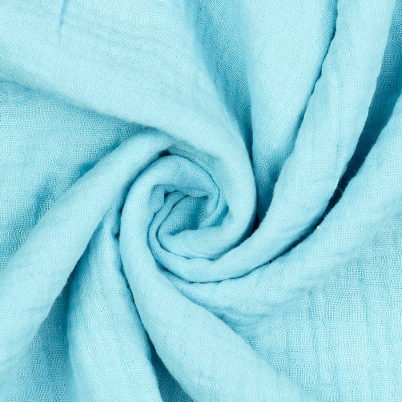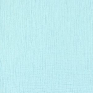 Descubre la muselina de algodón orgánico azul claro, un tejido esencial para proyectos que buscan suavidad, calidad y sostenibilidad. Su textura arrugada y ligera, característica de la doble gasa, la hace perfecta para prendas frescas y delicadas, ropa de bebé, accesorios y decoración del hogar. El tono azul claro aporta un toque de serenidad y versatilidad a tus creaciones. Certificada por GOTS y OEKO-TEX®, esta muselina garantiza un tejido seguro, ecológico y libre de sustancias nocivas.