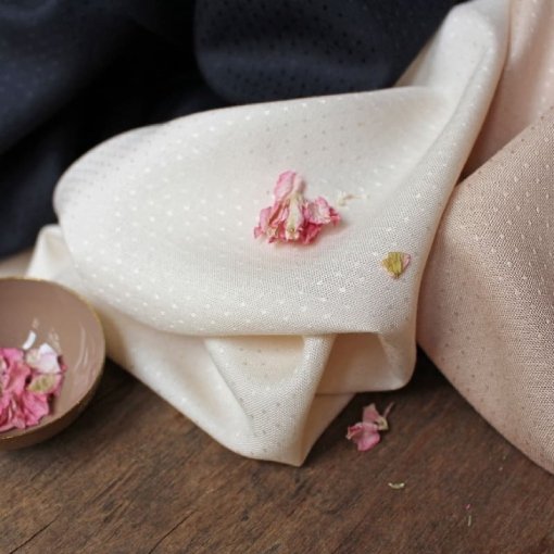 Plumeti de viscosa Ecovero™ de color blanco roto. Los delicados puntos bordados característicos de este tejido le darán un toque sofisticado y romántico a tus prendas. Es una tela fina, algo transparente, con mucha caída, vaporosa y de tacto suave, ideal para prendas de entretiempo.