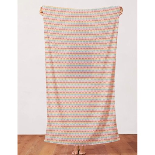 - Color: Líneas zigzag amarillo, rosa, turquesa y coral.