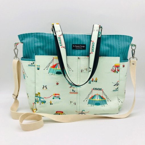 - Estampado circense divertido: un diseño lleno de detalles con elementos de circo sobre un fondo azul claro.