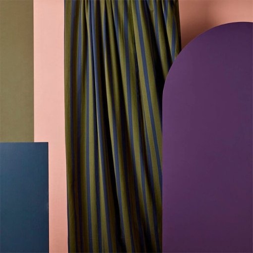Descubre la sofisticación de nuestra tela de algodón con rayas anchas verticales en verde hiedra y azul oscuro. Este tejido, de la prestigiosa colección Empreinte de Atelier Brunette, combina un tacto delicado y suave con un sutil acabado satinado.