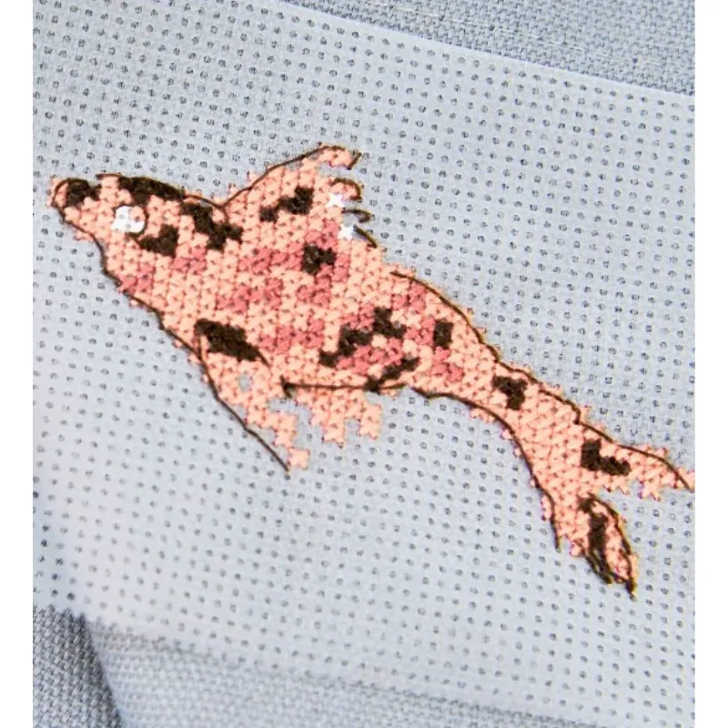 El bordado se realiza por una tela transparente hidro-soluble que corresponde a una tela Aida 5,5 pts/cm (14 ct).  Es necesario fijar la tela en el soporte donde vayas a bordar  y después bordar utilizando los agujeros de la tela como guía.  Una vez terminada la labor, se lava a una temperatura de entre 40 y 50 grados durante unos 5-10 minutos para que el canvas desaparezca y sólo quede el bordado.