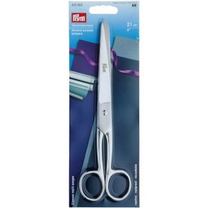 Tijeras universales de la reconocida marca Prym. Aptas para todo tipo de materiales ligeros y gruesos, tanto tejidos como papel y artículos de manualidades, para costura y para uso doméstico en general.