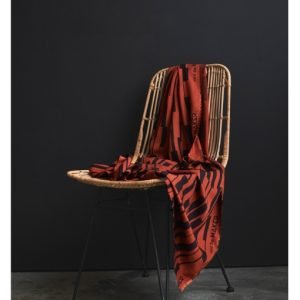 Twill de viscosa Ecovero™ con estampado geométrico de rectángulos y rayas desiguales en color negro sobre fondo rojo teja. Sobrio y elegante.